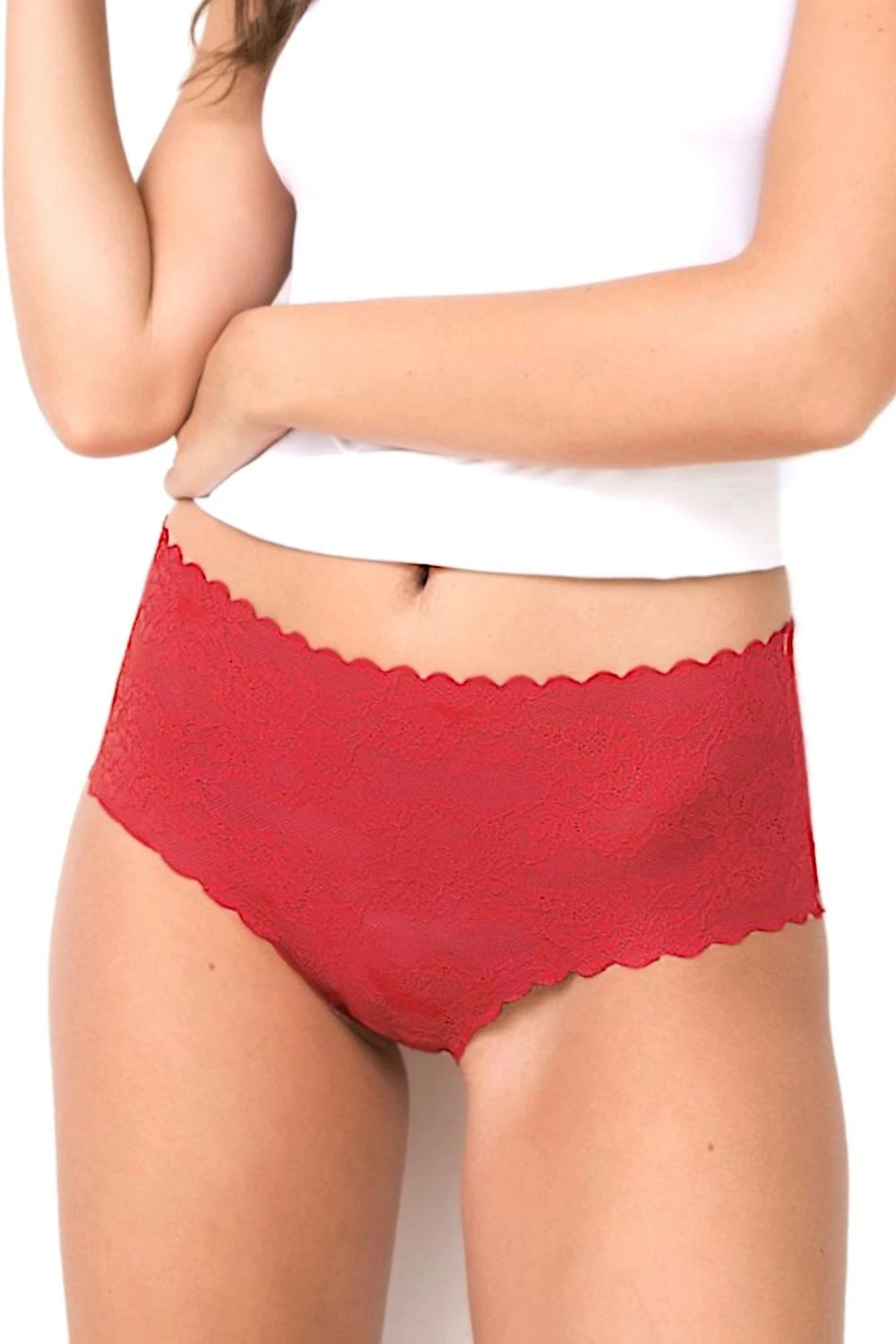 Dámské kalhotky Bellie red maxi JULIMEX - červená barva - z měkké elastické krajky - střižené laserem - bezešvé lemy - neviditelné pod oblečením