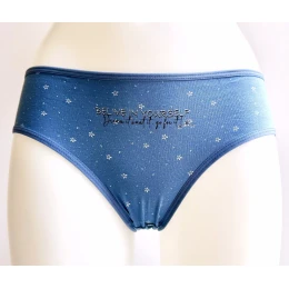 Dámské bavlněné kalhotky Bethany. Slušivé klasické kalhotky jsou pohodlným typem spodního prádla pro všechny příležitosti. Jsou zdobené drobnými hvězdičkami a nápisem. Obzvláště oceníte materiálové složení - 95% bavlna a 5% elasten. Použitý materiál je příjemný a poddajný na dotek.