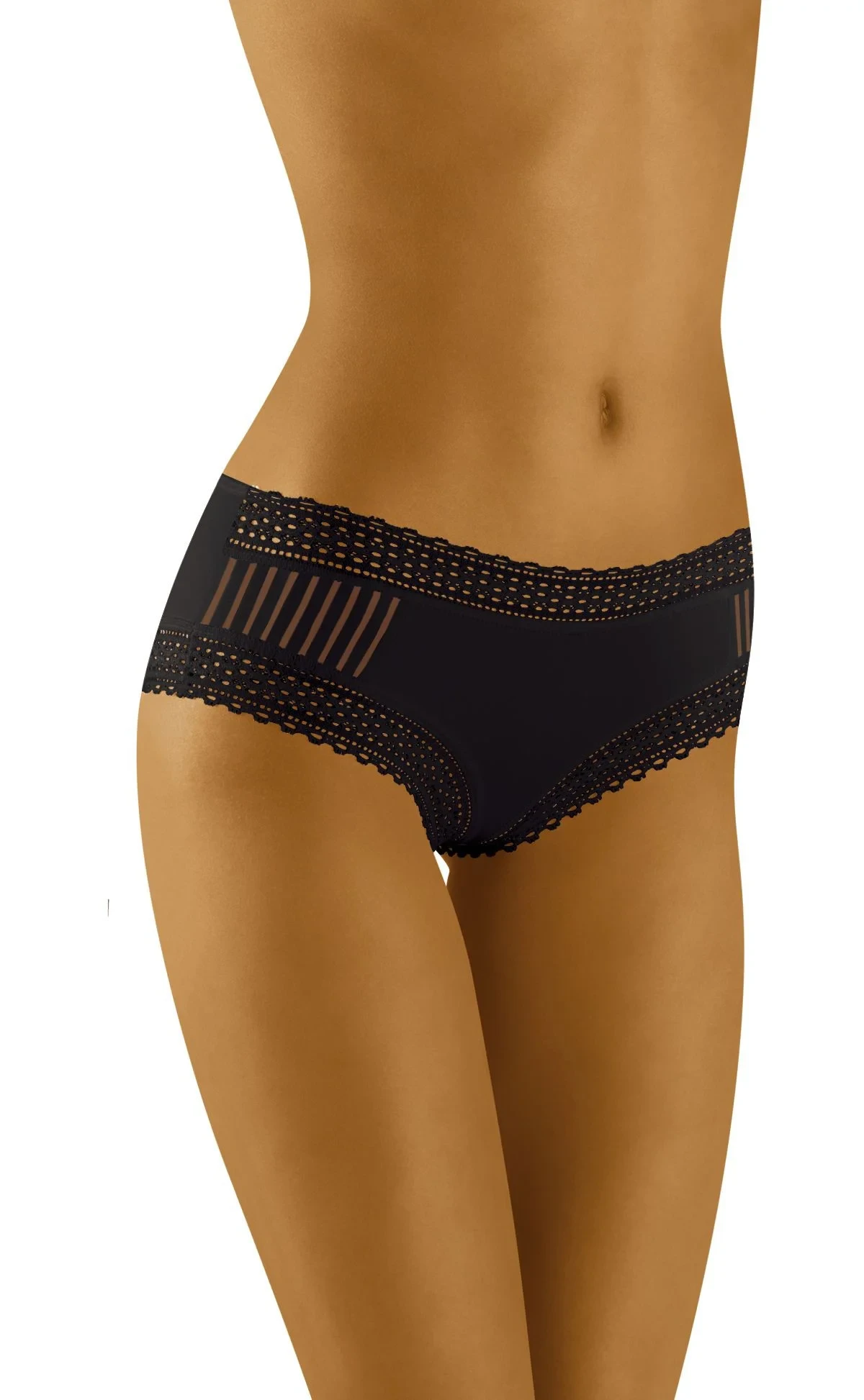 Pohodlné kalhotky bokového typu s projmutým zakončením na okrajích. Velmi ženské a mimořádně pohodlné. 2 barvy na výběr. složení: 83 % polyamid, 17 % elastan.