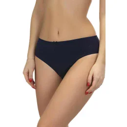 Dámské kalhotky typu "bikiny", které jsou balené po třech kusech ve tmavě modré barvě.