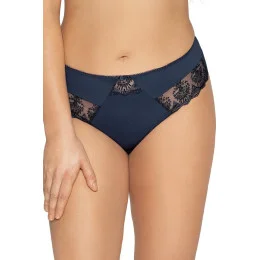 Braziliany AV 2183/B Navy Blue to zmysłowa propozycja dla kobiet, które cenią połączenie wygody z kobiecym, stylowym designem. Klasyczny krój typu brazyliany pięknie podkreśla pośladki, a delikatna koronka dodaje całości lekkości i romantycznego charakteru. Granatowy kolor w zestawieniu z subtelnym połyskiem materiału sprawia, że bielizna prezentuje się elegancko i intrygująco.