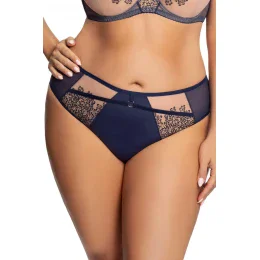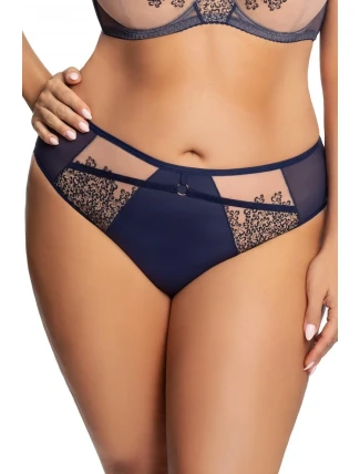 Přední díl kalhotek je ozdobený vsadkou z vyšívané síťoviny.