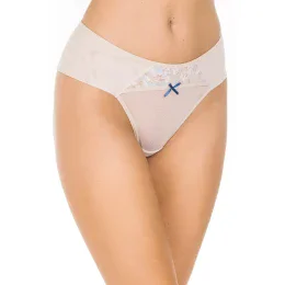 Přední díl kalhotek zdobí pěkná květovaná výšivka. Zadní díl modelu ze dvojitého tylu je vysoko vykrojený a má ploché lemování.