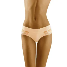 Velmi ženské kalhotky zdobené stylovou krajkou, s mírně rozšířenými boky, díky nimž jemně odkazují na šortky. Linie boků je mírně snížená, díky čemuž celek působí velmi tvarovaně. Složení: 83 % polyamid, 17 % elastan.