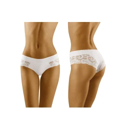 Velmi ženské kalhotky zdobené stylovou krajkou, s mírně rozšířenými boky, díky nimž jemně odkazují na šortky. Linie boků je mírně snížená, díky čemuž celek působí velmi tvarovaně. Složení: 83 % polyamid, 17 % elastan.