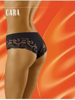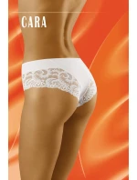 Přední díl modelu zdobí květovaná krajka, která přechází na zadní díl kalhotek.