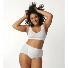 - Naše modelka má na sobě kalhotky maxi ve velikosti 38