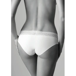 Dámské kalhotky klasického, spíše nižšího střihu, značky Cotonella zdobené v pase elastickou květinovou krajkou po celém obvodě. Kalhotky jsou laserově střiženy a tím se nebudou rýsovat a nevzhledně zařezávat. Do vnitřního dílu je zapracován bavlněný klínek pro komfortní nošení.