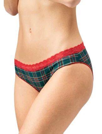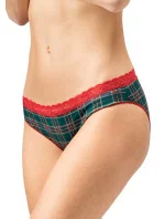 Dámské kalhotky klasického střihu značky Cotonella s vyšším pasem. Kalhotky jsou kombinací hladké látky a květinové krajky v přední části obvodu nohaviček. V horním obvodu je vsazena aplikace s logem Cotonella. Do vnitřního dílu je zapracován bavlněný klínek z BIO bavlny pro komfortní nošení.