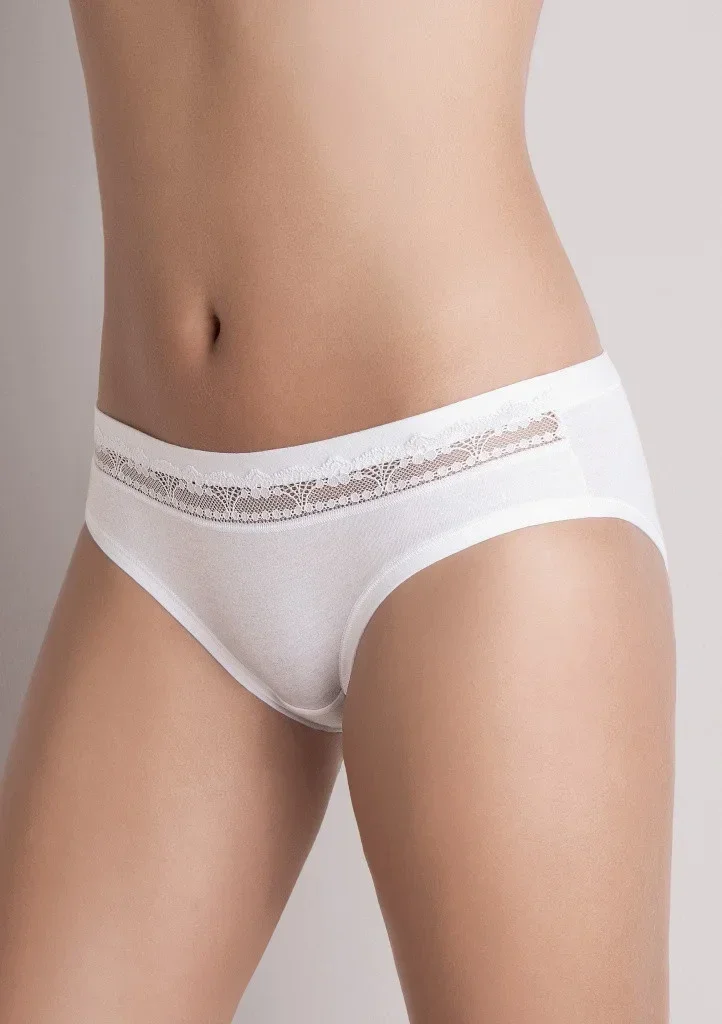 Dámské kalhotky od známé italské značky Cotonella. Kalhotky jsou vyrobeny z velkého podílu bavlny a jsou velmi příjemné na nošení. Mají nižší střih s oboustrannou látkovou gumičkou v pase a na nohavičkách, která je na přední části obvodu okrášlena elastickou průsvitnou krajkou. Do vnitřního dílu je zapracován bavlněný klínek. Kalhotky jsou dokonale jemné a příjmené na celodenní nošení. Balení obsahuje 2 kusy bílých nebo 2 kusy černých kalhotek.