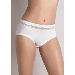 Dámské kalhotky od italského výrobce Cotonella. Kalhotky jsou vyrobeny z vysokého podílu bavlny. Josu měkké, pružné, prodyšné a velmi příjemné na těle. Kalhotky mají středně vysoký střih s plochými pružnými lemy v pase a na nohavičkách.Na přední části je obvod ozdoben elastickou průsvitnou krajkou. Do vnitřního dílu je zapracován bavlněný klínek pro maximální pohodlí. Balení obsahuje 2 kusy bílých kalhotek.