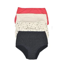 Vysoké dámské kalhotky, se širokou boční částí, dekorované vzorem s puntíky a kvěitnami.