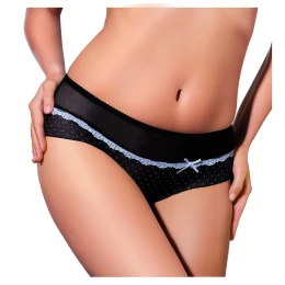 Jemné, lehce průhledné kalhotky v černé barvě, zdobené kaskádou půvabných hrášků. Přední strana s krajkovým lemem. 89 % polyamid, 11 % elastan.