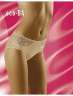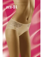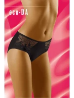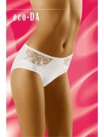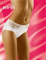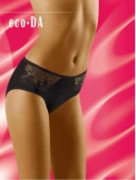 Dámské kalhotky z kvalitní bavlny. Vpředu jsou všivky z jemného tylu s vyšívaným květovaným vzorem. Jsou vyšší, zpevněné v bocích. 90% bavlna. 7% elastan (polyuretan), 3% polyamid.