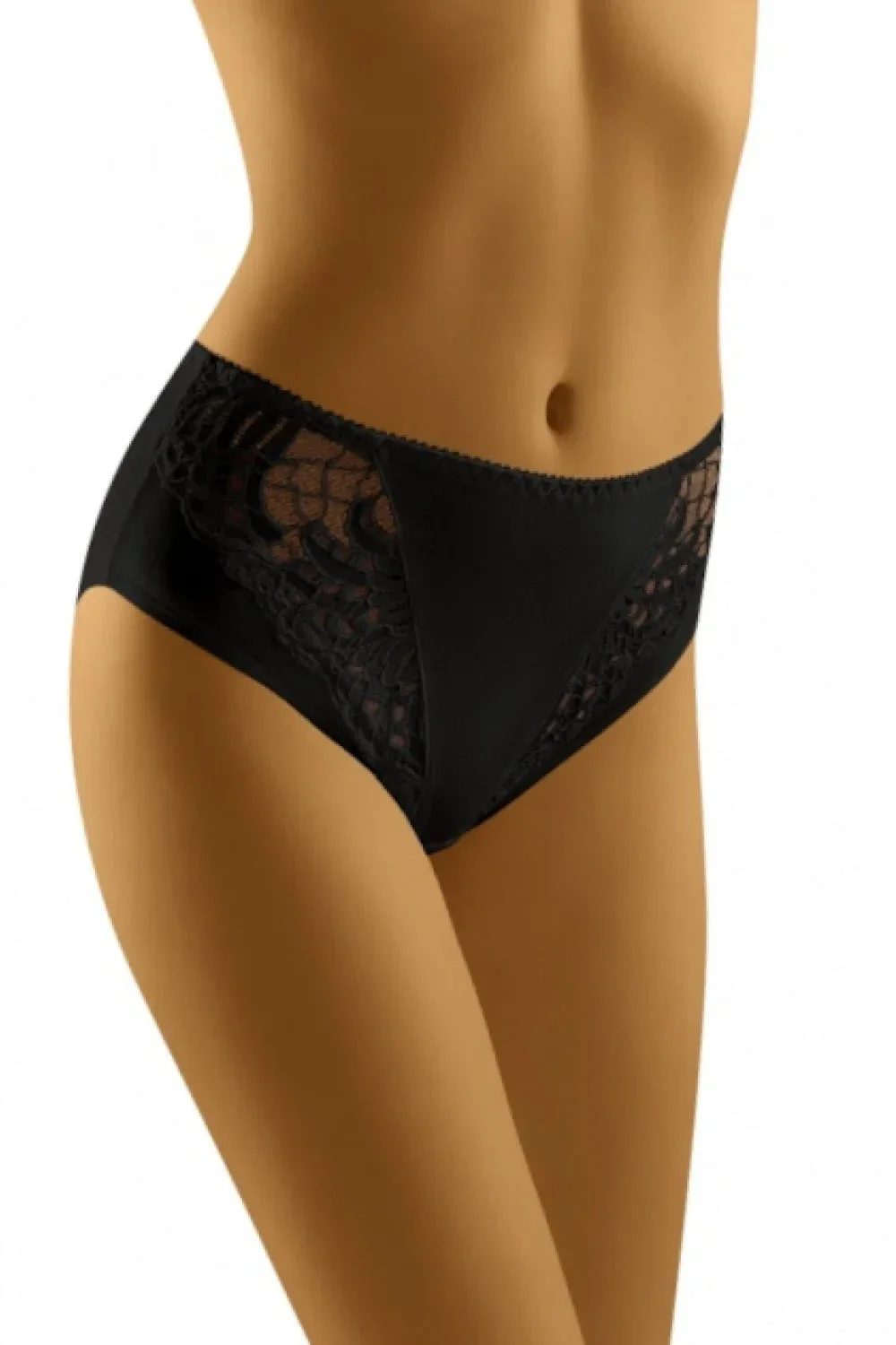 Dámské kalhotky eco-GA black Wol-bar - černá barva - z vysoce jakostní ekologické bavlny - s jemným žebrovaným vzorem - po bocích je dekorativní květinová krajka - velmi pohodlné