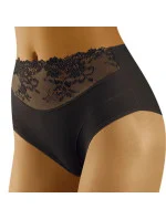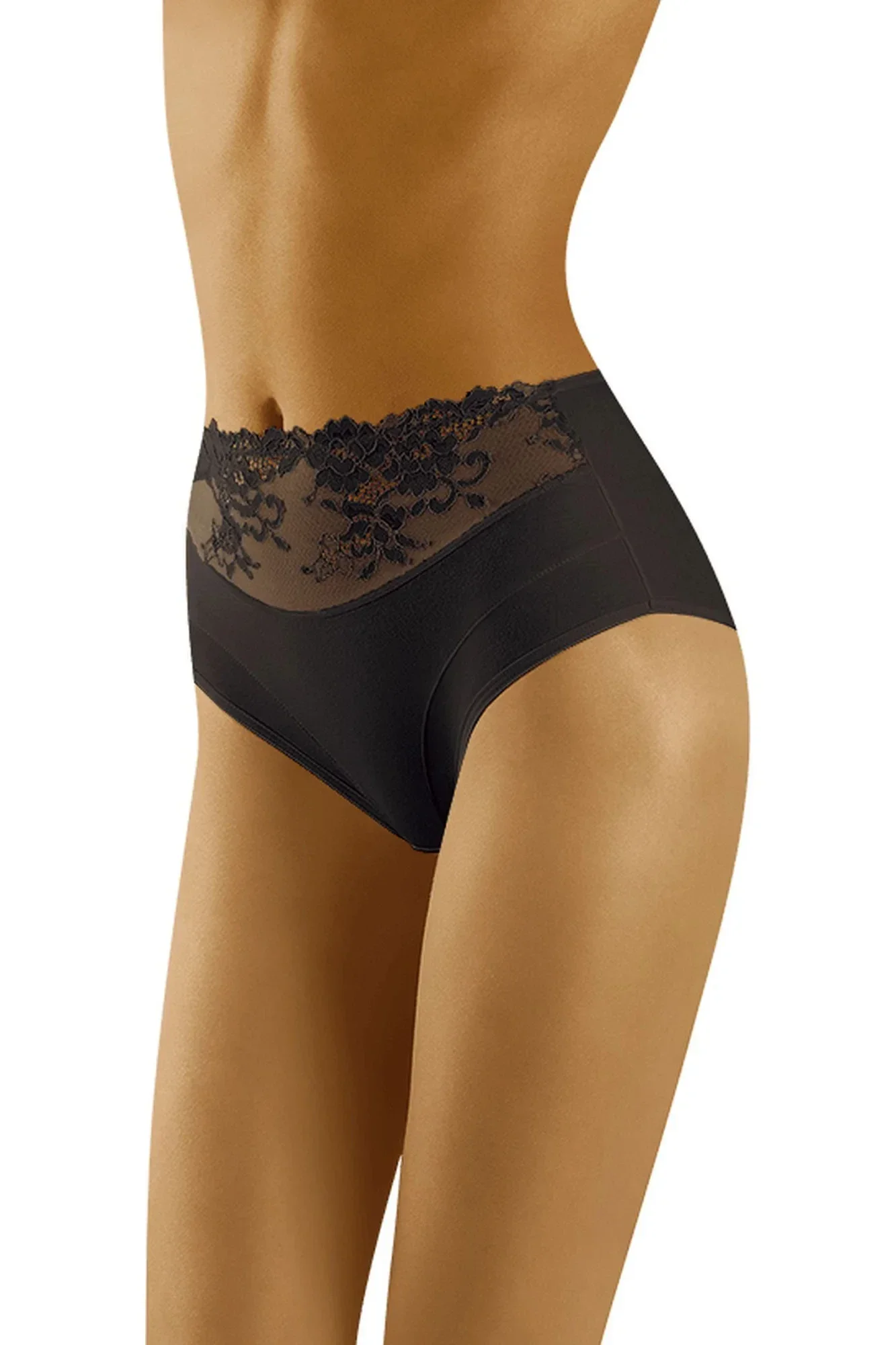 Dámské kalhotky Eco-HI Wol-bar - černá barva - z vysoce jakostní bavlny - vyšší pas - pas zdobený krajskou s květinovým motivem - zadní část je hladká
