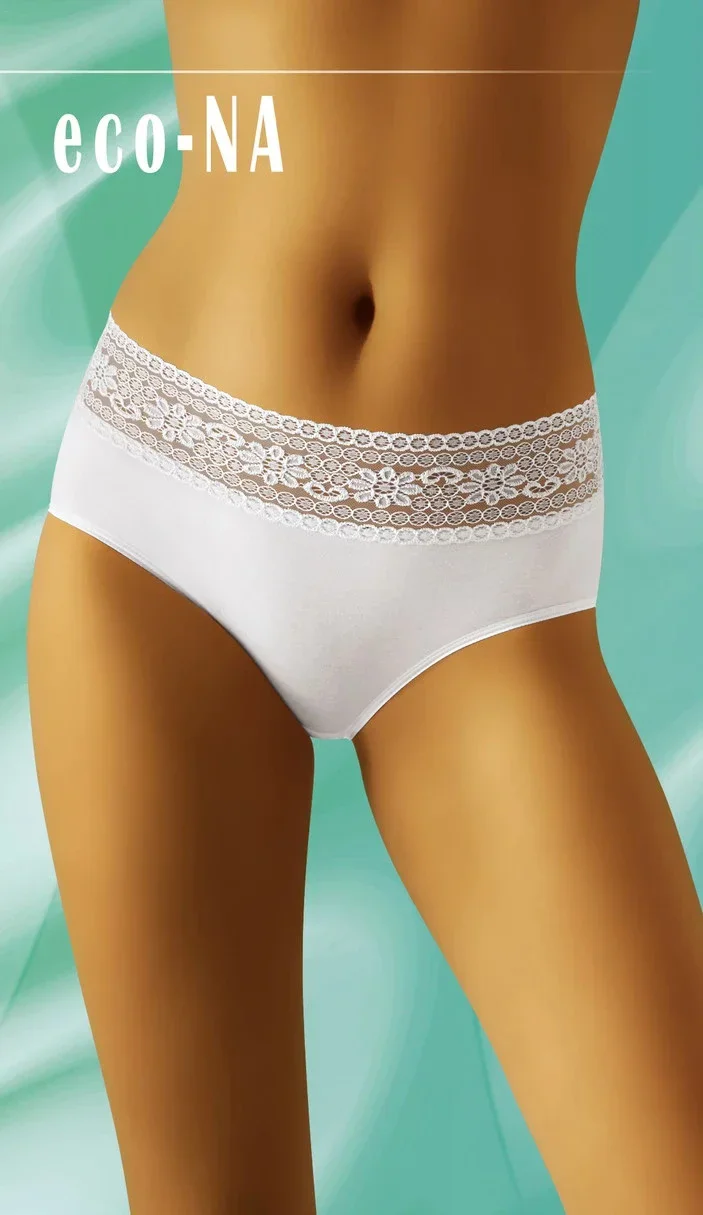 Dámské bavlněné kalhotky, vrchní díl obšitý širokou květinovou krajkou. Velikosti: M (obvod v pasu 56-64 cm), L (64-74 cm), XL (74-84 cm), XXL (84-94 cm)