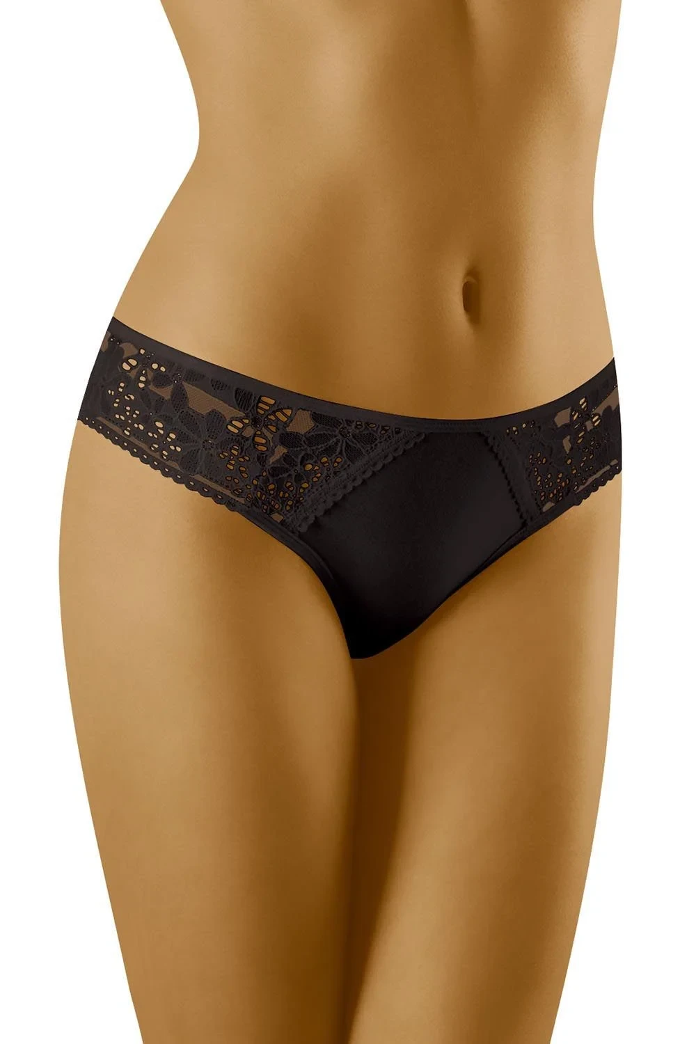 Pohodlné kalhotky s krásným květinovým zdobením kolem boků. 90 % bavlna, 7 % elastan, 3 % polyamid.