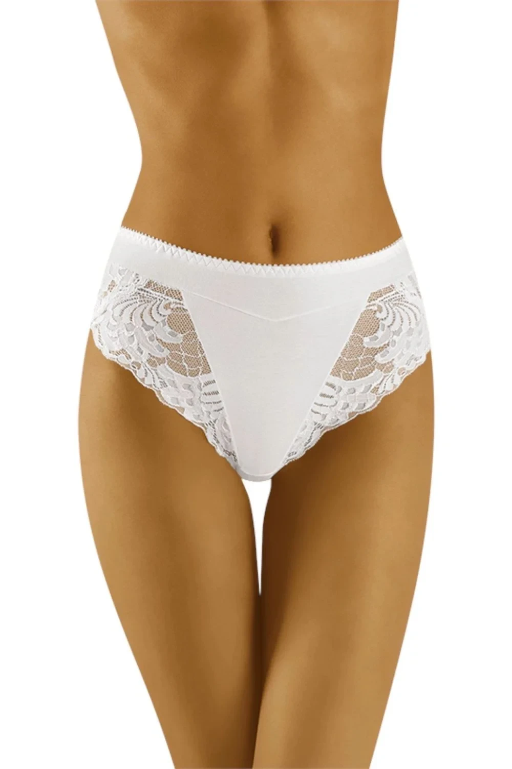 Dámské kalhotky Eco-ZO Wolbar - vyrobené z kvalitní ekologické bavlny - boky zdobené krajkou se vzorem pavích pér - zadní část je hladká