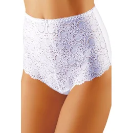 Přední díl modelu je ozdobený pružnou krajkou. Kalhotky jsou vysoké a plné.