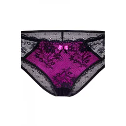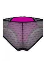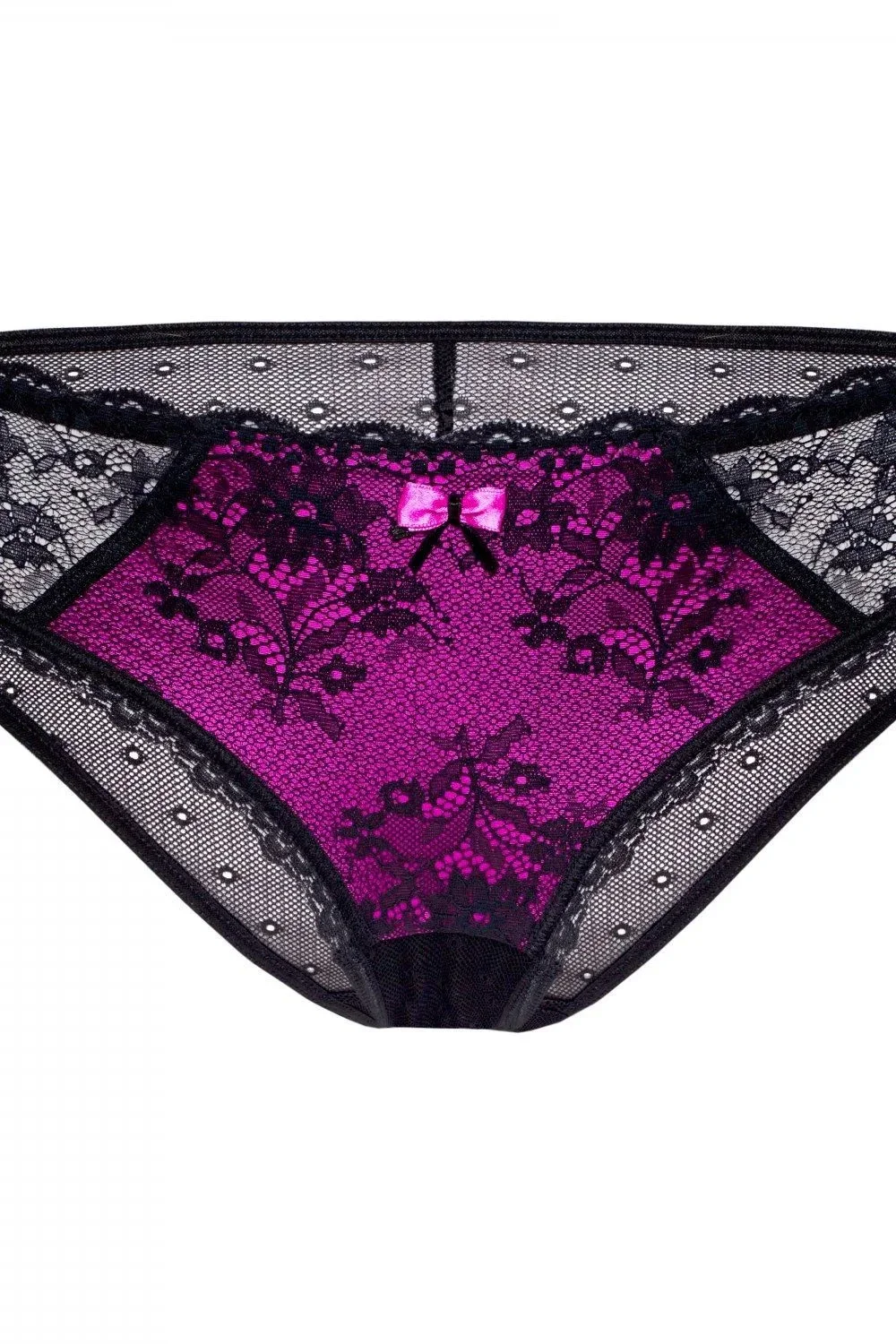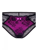 Dámské kalhotky Fifii ROZA - černá barva - vyrobené z krajky s květinovou výšivkou - ozdobná mašle ve fialové barvě