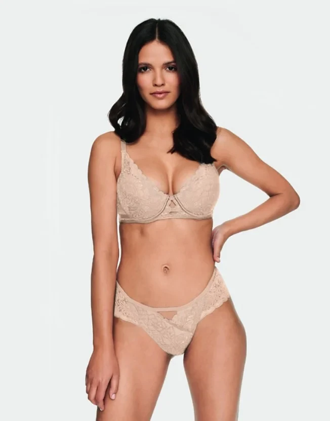 Kalhotky jsou vyrobené z ažurové krajky. Přední díl modelu je podšitý bavlnou.