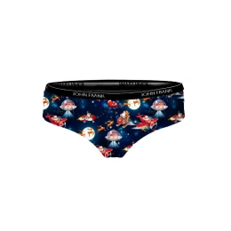 Dámské kalhotky střihu hipster od značky John Frank z limitované vánoční kolekce (omezené množství, bez možnosti doplnění). Bavlněné kalhotky s módně zpracovaným potiskem jsou velmi příjemné na dotek a pohodlné při nošení. Jemná, středně široká guma v pase má kolem logo John Frank. Do vnitřního dílu je zapracován bavlněný klínek pro komfortní nošení. Slaďte se v kolekci ON & ONA, dámské kalhotky i pánské boxerky naleznete u nás v jednom designu, buďte IN s partnerem.