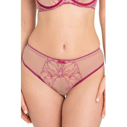 Dámské kalhotky Irina M300 fuchsia Samanta - béžová barva - z transparentního tylu s výšivkou - efekt tetování - zadní část bezešvá