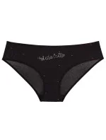 Dámské kalhotky Jana. Dámské kalhotky klasického střihu. Kalhotky jsou ozdobeny drobným potiskem a nápisy. Použitý materiál je příjemný a poddajný na dotek.