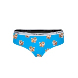 Dámské kalhotky střihu hipster od značky John Frank z vysokého podílu bavlny. Kalhotky s módně zpracovaným potiskem jsou velmi příjemné na dotek a pohodlné při nošení. Jemná, středně široká guma v pase má kolem logo John Frank. Do vnitřního dílu je zapracován bavlněný klínek pro komfortní nošení.