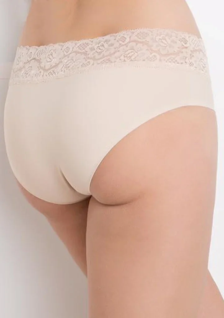 Dámské elegantní kalhotky značky Julimex. Jemné a dokonale hladké kalhotky klasického střihu kombinované s krajkou v bílé, tělové nebo černé barvě. Kalhotky jsou bezešvé a horní obvod lemuje krásná krajka s květinami. Do vnitřního dílu je zapracován bavlněný klínek. Kalhotky jsou vyrobeny laserovou metodou a díky tomu dokonale přilnou k tělu, nikde se nezařezávají a budou skvělé při nošení přilnavého nebo letního oblečení. Tyto elegantní kalhotky jsou velmi příjemné na dotek a jsou baleny v dárkové krabičce s fialovou mašličkou.