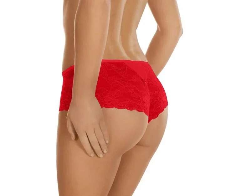 Jemné krajkové šortky s několika kontrastními mašličkami v přední části. Krásně zdobí boky, lehce průsvitné... Složení: 92 % polyester, 8 % elastan.