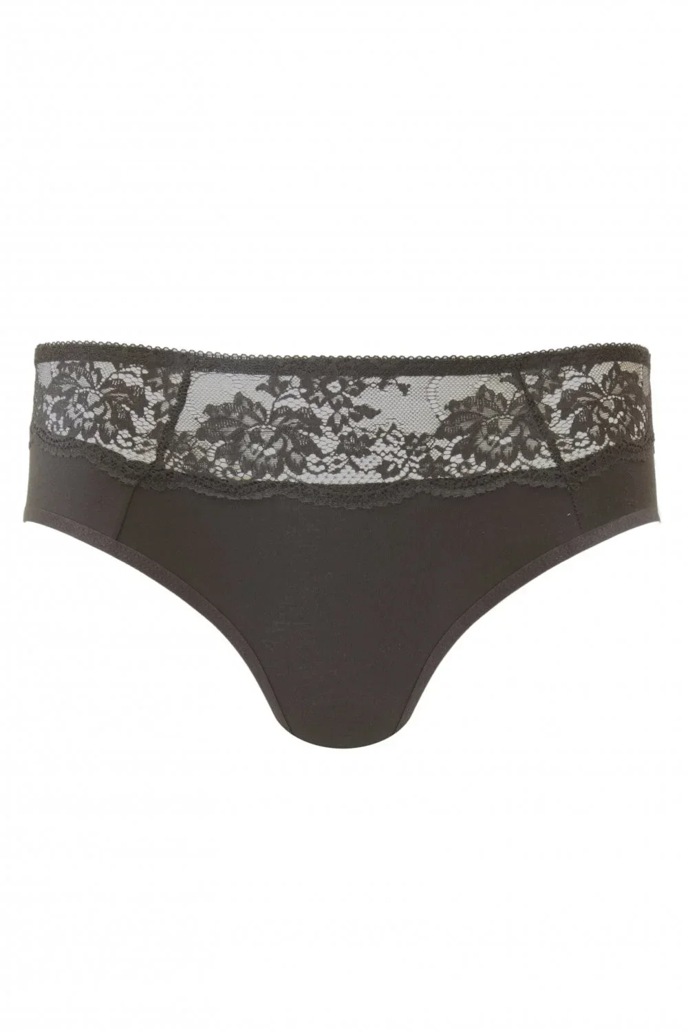 Dámské kalhotky Kinia Emili - černá barva - kalhotky mají klasický střih - zvýšený pas - širší boky - vrchní linie je zdobená jemnou krajkou s květinovým vzorem - hladká zadní část