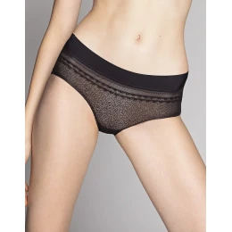 Kalhotky jsou vyrobené pomocí laserové technologie. Přední díl modelu tvoří síťovina a ažurová tkanina. Linie pasu a zadní díl má ultra tenké lemování okrajů.