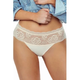 Měkká a jemná krajka s květinovým motivem dodává modelu eleganci a styl. Kalhotky zdobí krajkové detaily podél hýždí a v pase. Bavlna ve přední části modelu je střižená laserem. Bavlněná vložka (100 %) zvyšuje pocit pohodlí a komfortu při nošení. Model si zamilují ženy, které dokáží ocenit pohodlí a eleganci. Kalhotky jsou balené po jednom kuse v elegantní krabičce se saténovou stužkou.