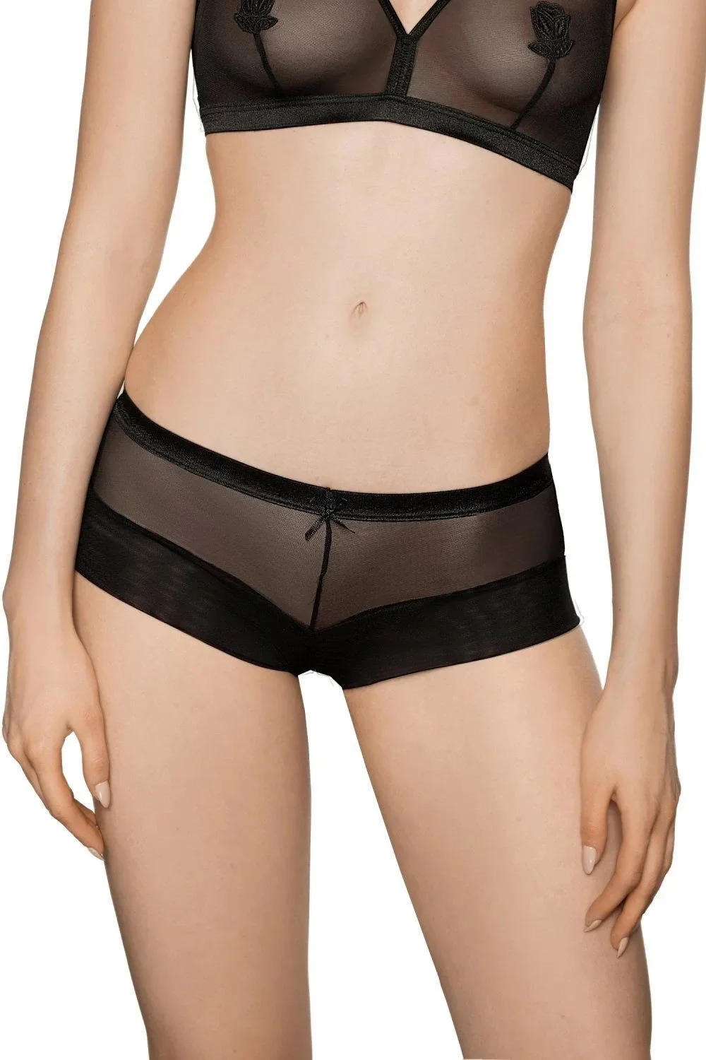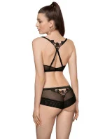 Dámské kalhotky Lisbet ROZA - černá barva - vyrobené z tylové síťoviny - zadní část je ozdobená krajkovou vsadkou