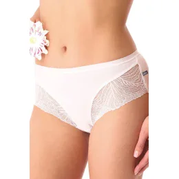 Spodní díl bikin LPC 112 je harmonickým spojením klasiky a jemné elegance. Je vyroben z měkké, k pokožce šetrné bavlny a poskytuje pohodlí po celý den. Boční vsadky z jemné krajky v listovém vzoruór dodávají spodním dílům jemný půvab a podtrhují ženský styl. Skvěle se hodí jak pro každodenní nošení, tak pro elegantnější styling spodního prádla.