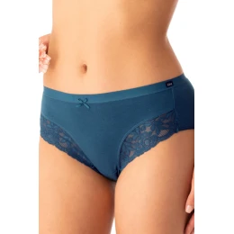 gładkie majtki w kolorze głębokiego błękitu z koronkowymi wstawkami po bokach,