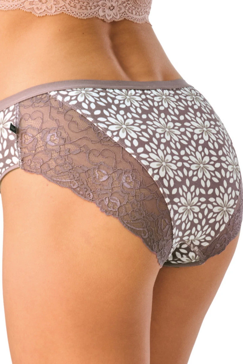 Elegantní kalhotky z měkkého materiálu příjemného na dotek, který zajišťuje pohodlné nošení po celý den. Jemný květinový vzor jim dodává ženský nádech a jemná krajka na bocích dodává lehkost a eleganci. Klasický střih se dokonale přizpůsobí siluetě, aniž by omezoval v pohybu. Ideální volba pro ženy, které u každodenního prádla ocení kombinaci pohodlí a estetiky.
