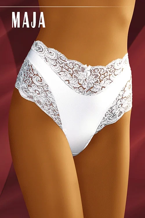 Dámské kalhotky Maja white Wol-bar - bílá barva - z kvalitního elastického mikrovlákna -kombinovaného s luxusní nádhernou krajkou