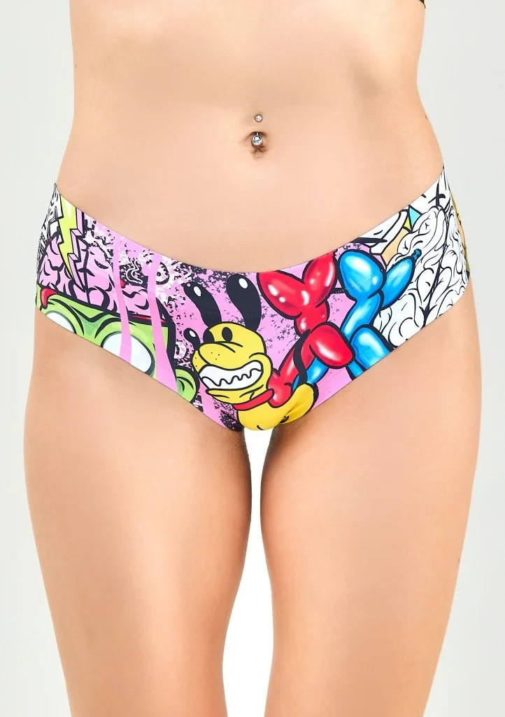 Kalhotky firmy MEMÉME zaujmou nápaditým a mladistvým potiskem a jsou určeny pro každou ženu, nebo dívku, kterou baví móda a design. Kalhotky jsou laserově střiženy a obšity plochými švy pro dokonalou kopii Vašich křivek. Pro zvýšení komfortu je uprostřed bavlněný klínek.