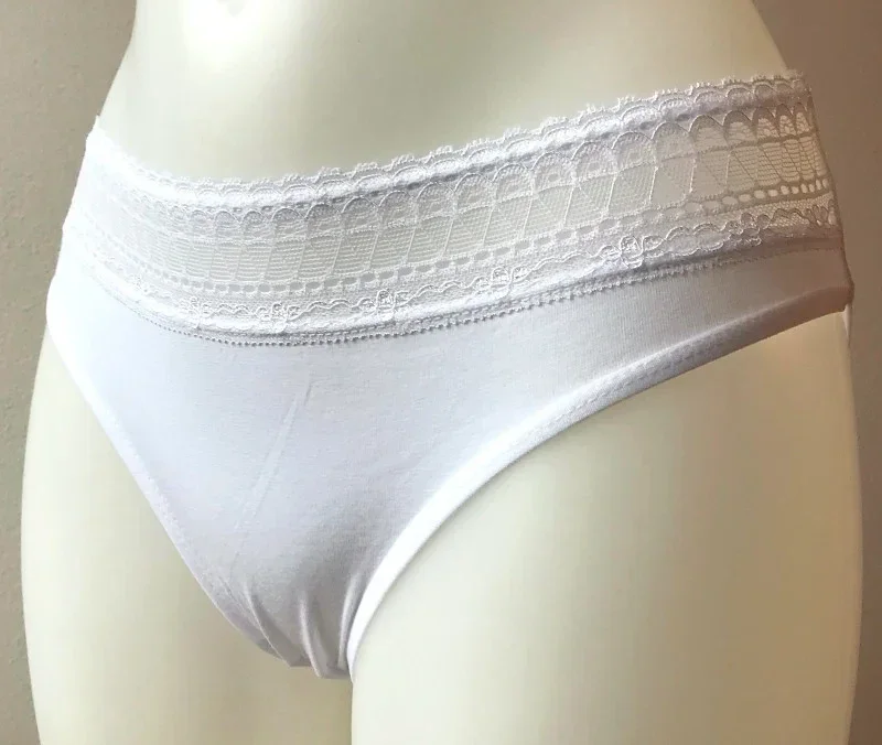 Dámské kalhotky Michaela. Dámské kalhotky klasického střihu s jemnou krajkou v pase. Použitý materiál je jemný a poddajný na dotek.