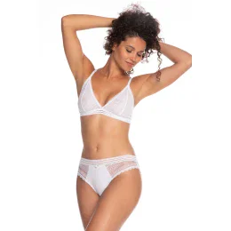 Přední díl kalhotek je vyrobený z hladké bavlny. Boky a zadní díl modelu jsou ušité z efektní krajky. V pase modelu je širší ažurová guma. Kalhotky jsou balené po dvou kusech.