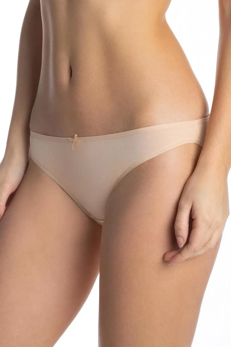 Dámské kalhotky typu "mini bikiny" - klasický komplet tří kusů v béžové barvě.