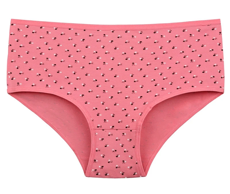 Dámské bavlněné kalhotky Miriam. Slušivé klasické vyšší kalhotky s květinovým potiskem jsou pohodlným typem spodního prádla pro všechny příležitosti. Obzvláště oceníte materiálové složení - 95% bavlna a 5% elasten. Použitý materiál je příjemný a poddajný na dotek.
