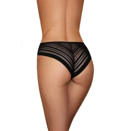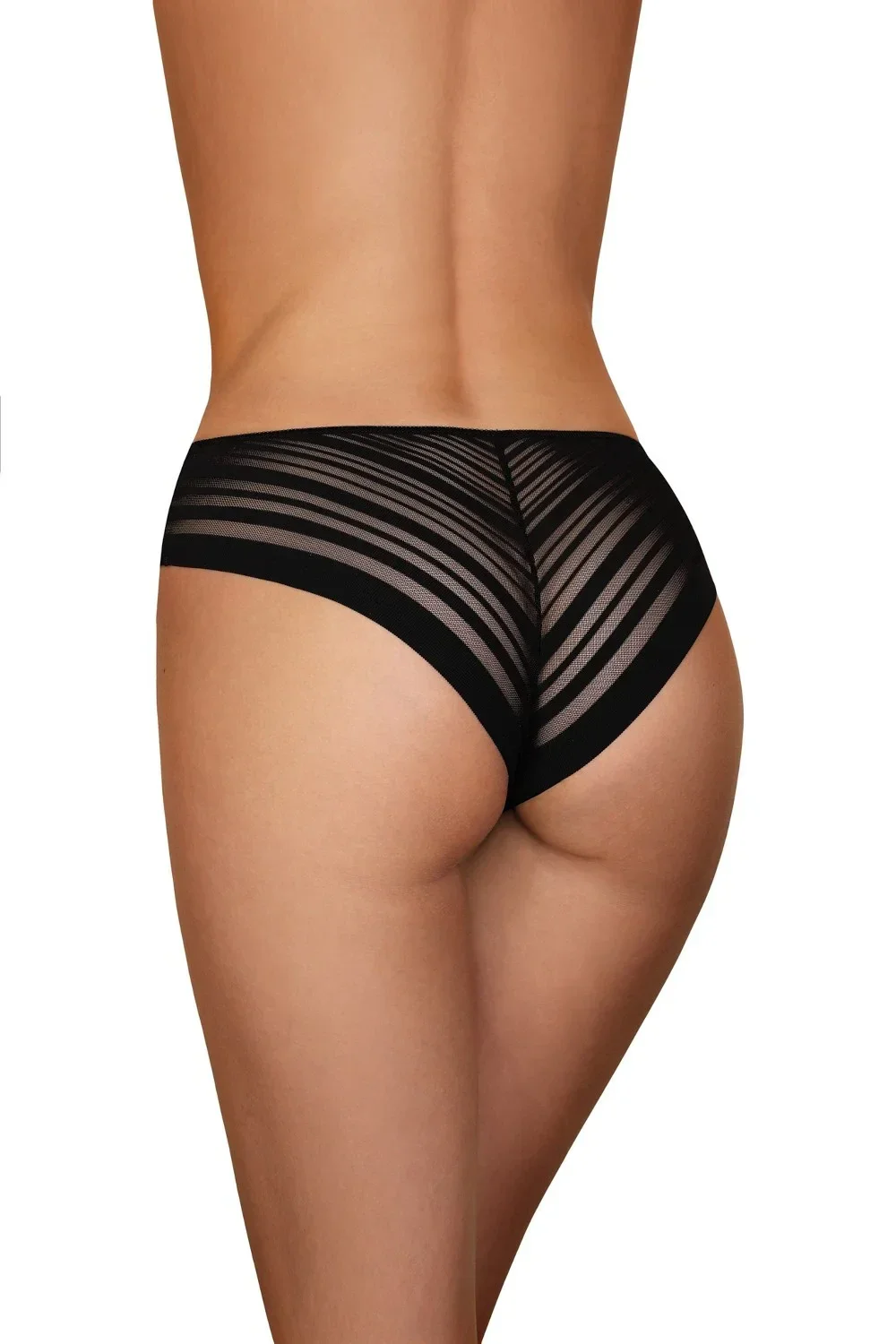 Kalhotky jsou bezešvé. Přední díl modelu je hladký. Zadní díl kalhotek je lemovaný laserem a je ozdobený vsadkami ze síťoviny.