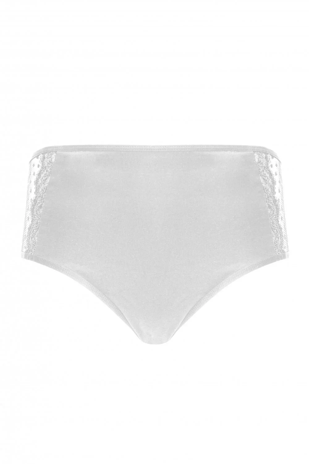 Dámské kalhotky Monia Emili - bílá barva - kalhotky mají klasický střih - zvýšený pas - na bocích mají jemnou krajku s květinovým vzorem - hladká zadní část