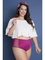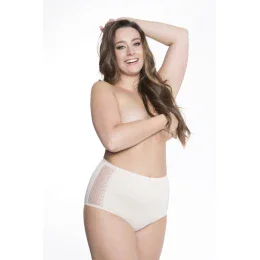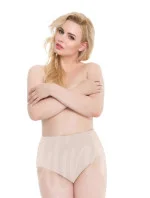 Dámské kalhotky s vyšším pasem. Na bocích mají ozdobné krajkové všivky s geometrickým vzorem. 89% polyamid, 10% elastan, 1% bavlna.