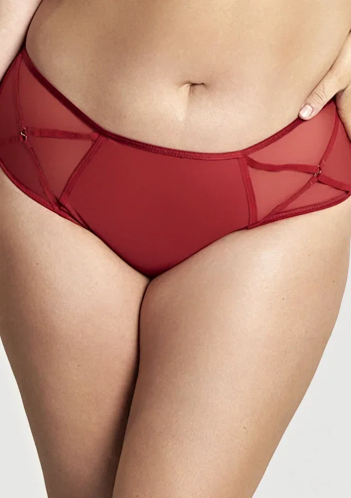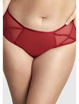 Dámské elegantní kalhotky značky Panache vyššího střihu. Přední díl je tvořený dílky jednobarevného tylu.. Zadní část z mikrovlákna je ozvláštněna nahoře malým výkrojem. Do vnitřního dílu je zapracován bavlněný klínek.