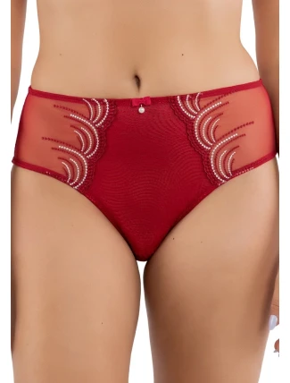 Dámské elegantní kalhotky vyššího střihu značky Parfait. Vysoké francouzské kalhotky v módním střihu jsou kombinované strečovým saténem a jemným tylem. Kalhotky jsou doplněny jemnou mašličkou na přední části.
